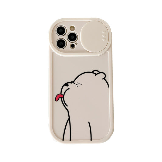 Sliding Window Phone Case Material Suitable Protective Cover Cartoon Painted Tongue-sticking Bear