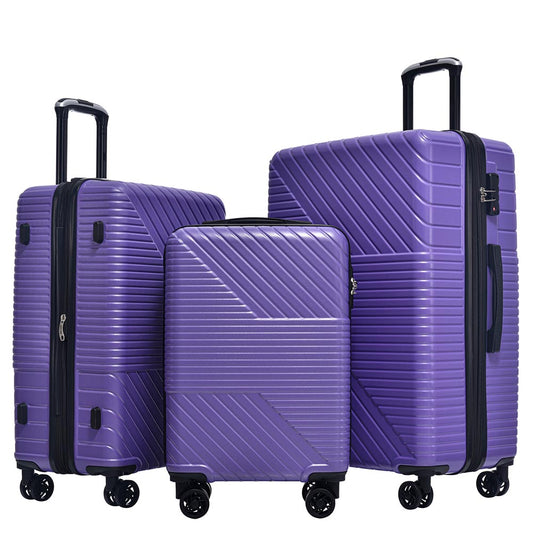3-Piece Lightweight Hard-shell Luggage Set with Double Spinner Wheels and TSA Lock - Purple