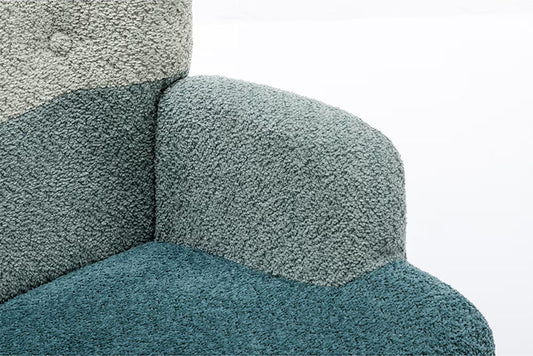 Modern Patchwork Accent Chair With Solid Wood Armrest And Feet, Mid-Century Modern Accent Sofa, Fabric Sofa Chair For Living Room Bedroom Studio, Comfy Side Armchair For Bed