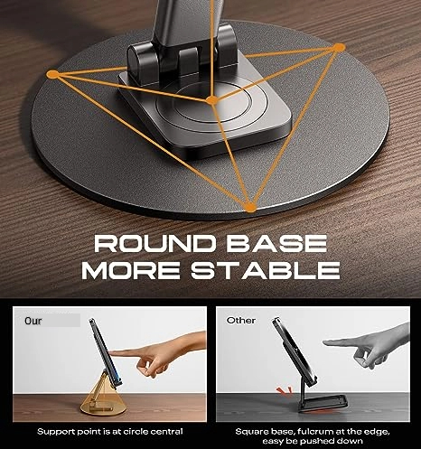 - STURDY CONSTRUCTION: The desktop phone stand is made of premium aluminum alloy, which ensures it to stay firmly in place and hold your cell phone or tablet steadily.