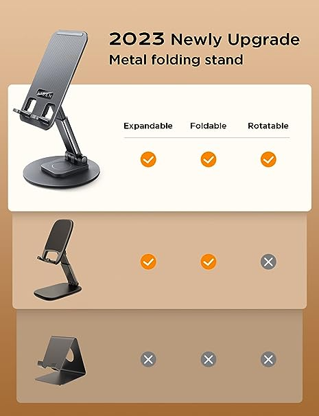 - FOLDABLE & PORTABLE: Fully foldable and compact, this cell phone stand can be easily packed into a a backpack, handbag or suitcase for travels.